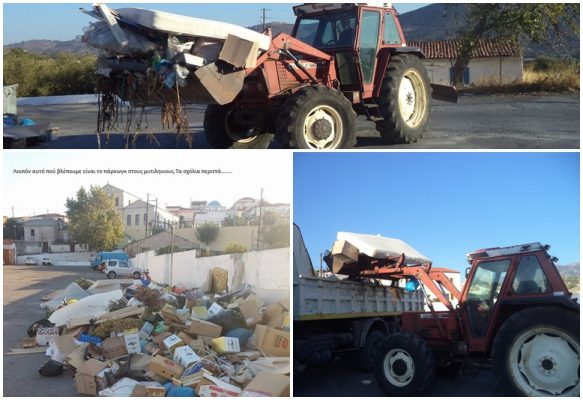 Μια φωτογραφία που αναρτήθηκε στο fecebook για την απαράδεκτη κατάσταση που επικρατούσε στο πάρκινγκ των Μυτιληνιών ,με πετάμενα στρωματά ,καφάσια ,ντενεκέδες από λάδι κλπ έκανε τον πρόεδρο του χωριού κ. Γεώργιο Ελευθερόγλου να απαντήσει για την εικόνα αυτή, λέγοντας ότι ο ίδιος διαθέτει δικά του μηχανήματα συνεχώς για να εξυπηρετήσει τους συγχωριανούς του, γιατί την δεδομένη στιγμή τα μηχανήματα του Δήμου έχουν βλάβη .