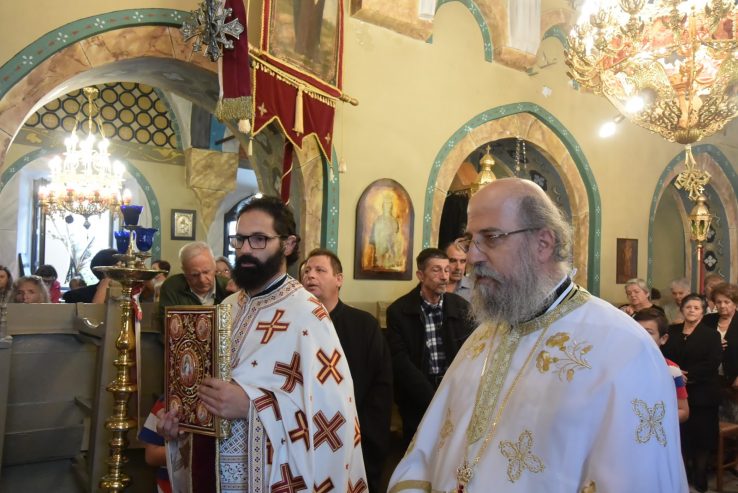 Η Θεία Λειτουργία τελέστηκε μέσα σε κλίμα λαμπρότητας και κατάνυξης απο τους οι ιερείς π. Ανδρέας Βογιατζής και π. Ευτύχιος Λάνδρου. Πλήθος πιστών γέμισε τον Ναό και παρακολούθησε την Λειτουργία.