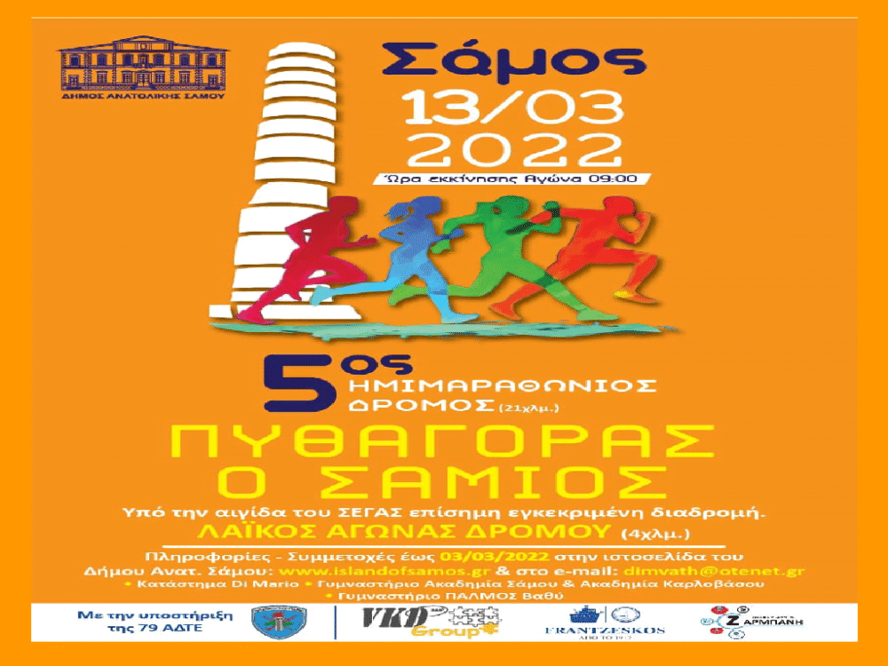 Ο Δήμος Ανατολικής Σάμου διεξάγει για πέμπτη χρονιά, τον Ημιμαραθώνιο «Πυθαγόρας ο Σάμιος», την Κυριακή 13 Μαρτίου 2022.