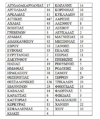 Η κατανομή των ιατρών αυτών ανά περιοχή παρουσιάζεται στον κάτωθι πίνακα: