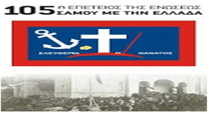 Τη Κυριακή 12-11-2017 και λόγω του Εορτασμού της 105ης Επετείου Ενώσεως της Σάμου με την Ελλάδα, όπου θα διεξαχθεί και παρέλαση, θα ληφθούν έκτακτα μέτρα οδικής κυκλοφορίας για την ασφαλή διεξαγωγή της εκδήλωσης. Ως εκ τούτου, παρακαλούμε να μην σταθμεύετε και κυκλοφορείτε με τα ΙΧΕ και δίκυκλα οχήματα σας στη παραλιακή οδό Βαθέος από το ύψος της Αστυνομικής Διεύθυνσης έως και το παλαιό λιμάνι από ώρα 10:00 π.μ. έως το πέρας της εκδήλωσης.