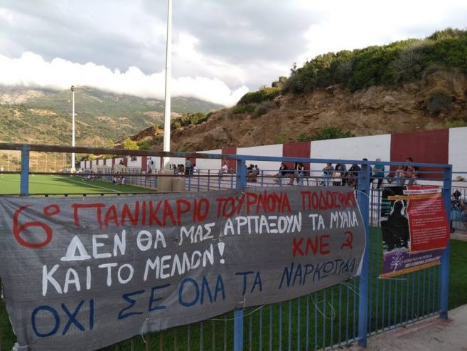 « Στα πλαίσια των πολύμορφων εκδηλώσεων στην Ικαρία για τα 100 χρόνια ΚΚΕ και 50 χρόνια ΚΝΕ, διοργανώνουμε για 6η συνεχόμενη χρονιά το συγκεκριμένο τουρνουά με αφορμή και την σημερινή παγκόσμια ημέρα κατά των ναρκωτικών. Δεν είναι απλά μια επετειακή συνάντηση κάθε χρόνο, αλλά και φέτος προσπαθούμε να αναδείξουμε το μεγάλο πρόβλημα των ναρκωτικών στην περιοχή μας. Στόχος μας είναι να φέρουμε την νεολαία πιο κοντά τόσο στην αιτία που το γεννά όσο και στον τρόπο αντιμετώπισης του, αλλά και να δείξουμε ποίοι είναι αυτοί που σήμερα θέλουν την νεολαία σε καταστολή και τι κερδίζουν απο αυτό.