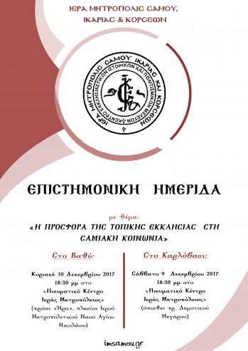 Την προσφορά αυτή τιμά το «Κέντρο Εκκλησιαστικών, Ιστορικών και Πολιτισμικών Μελετών» της Ιεράς Μητροπόλεως Σάμου, Ικαρίας και Κορσεών με την διοργάνωση της παρούσας επιστημονικής ημερίδας, στην οποία θα παρουσιαστούν τα πορίσματα της έρευνας για την προσφορά της Εκκλησίας στην υγεία, στην εκπαίδευση, στην άμυνα, στους εμπερίστατους συνανθρώπους μας και σε κάθε είδους κοινωφελή προσπάθεια.