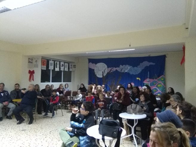 Στη συνέχεια η λογοτέχνης Κούλα Καραμηνά διάβασε μαζί τους παραμύθια στα οποία τα παιδιά έπαιρναν ενεργά μέρος σε θεατρικό παιχνίδι και ακολούθησε ζωγραφική με την βοήθεια του ζωγράφου Γιάννη Κομινόζογλου.