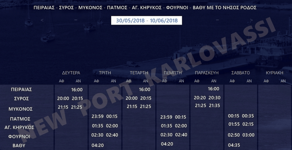 Πάλι το New Port Karlovassi πρώτο σας παρουσιάζει τα δρομολόγια που θα κάνει  το πλοίο Nissos Rodos για το διάστημα 30 Μάιου μέχρι 10 Ιουνίου.