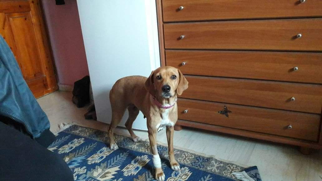 Στην φωτογραφία βλέπετε μια αδέσποτη σκύλα από το Κοκκάρι, που στειρώθηκε την προηγούμενη εβδομάδα και φροντίζεται στην διάρκεια της ανάρρωσης της από εθελόντρια.