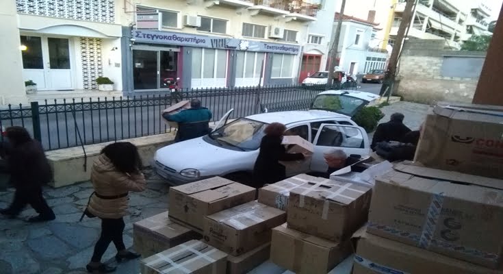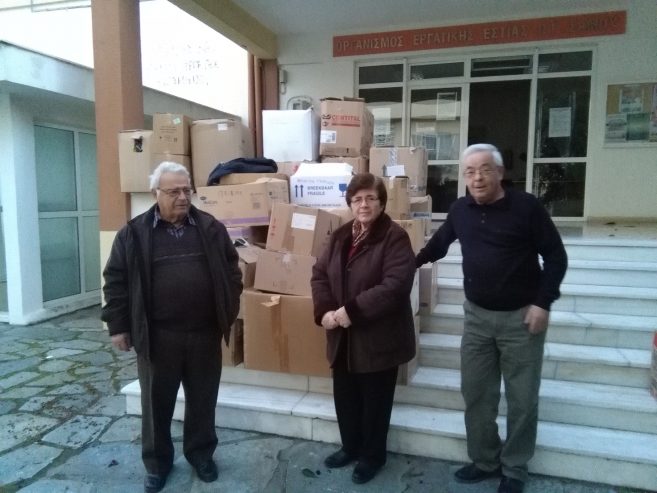 Δεκάδες δέματα με χειμωνιάτικα ρούχα και παπούτσια ανδρικά, γυναικεία, παιδικά και κουβέρτες παρέδωσαν εκπρόσωποι του Εργατικού Κέντρου Σάμου , της Πανσαμιακής Επιτροπής Ειρήνης και των Γυναικείων Συλλόγων μελών της Ομοσπονδίας Γυναικών Ελλάδας (ΟΓΕ), την Παρασκευή 19 Γενάρη 2018 στο Κέντρο Υποδοχής και Ταυτοποίησης για τις μεγάλες ανάγκες των προσφύγων και μεταναστών .