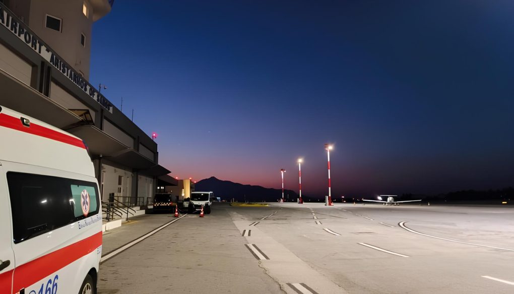 Το αεροσκάφος του ΕΚΑΒ παρέλαβε και τους δύο ασθενείς από το αεροδρόμιο της Σάμου, στήνοντας μια αερογέφυρα σωτηρίας που κατέληξε στην Αθήνα.