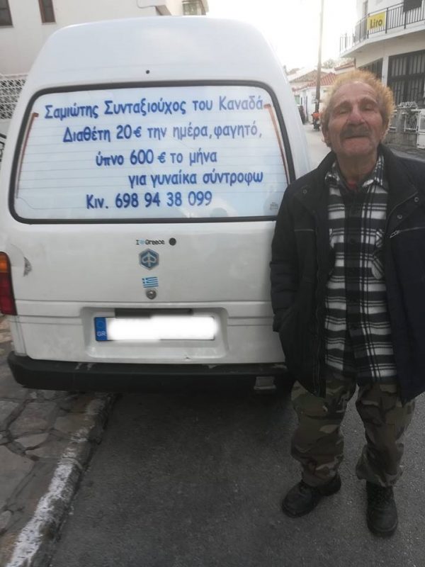 “Σαμιώτης συνταξιούχος του Καναδά, διαθέτει 20 ευρώ την ημέρα, φαγητό ,ύπνο,600 ευρώ το μήνα, για γυναίκα σύντροφο”.