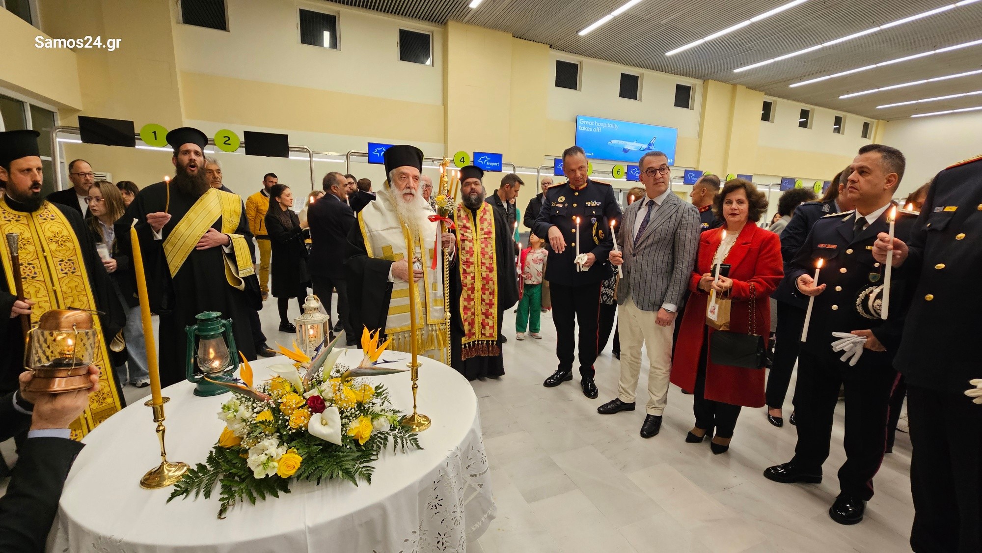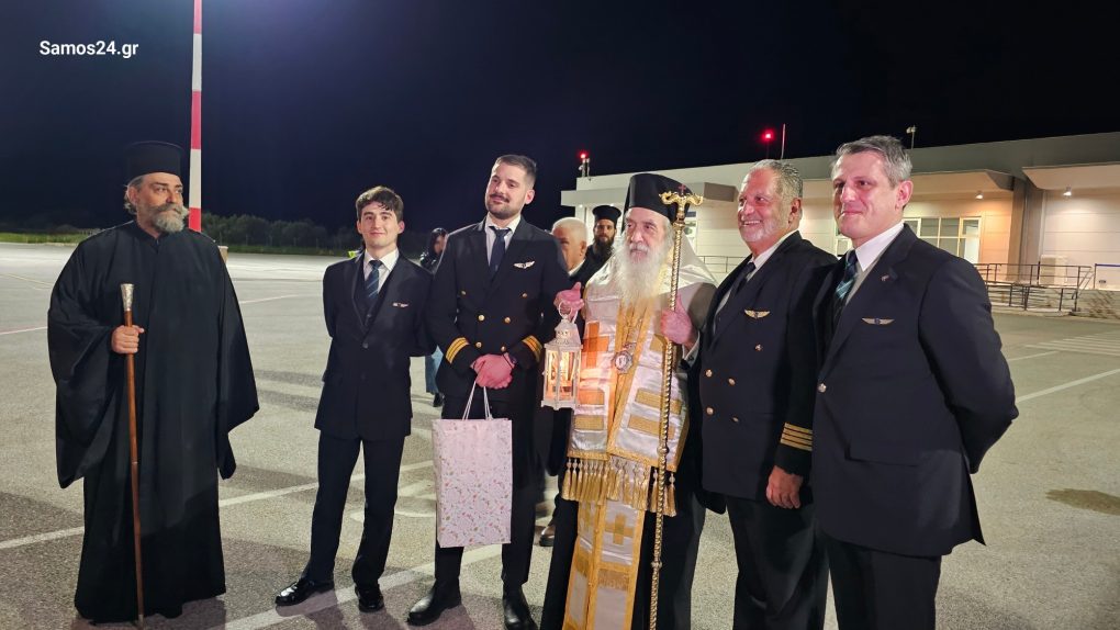 Το Άγιο Φως έφτασε στη Σάμο το βράδυ του Μεγάλου Σαββάτου, μεταφερόμενο με ειδική πτήση της Olympic Air που προσγειώθηκε στο αεροδρόμιο «Αρίσταρχος ο Σάμιος» στις 20.40.