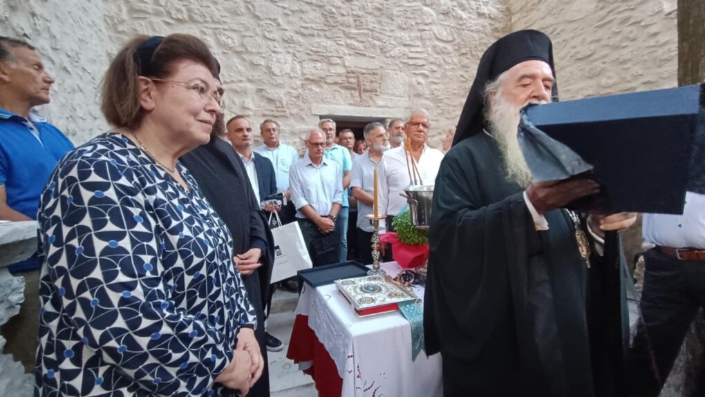 Στην τελετή χοροστάτησε ο Μητροπολίτης Σάμου, κ. Ευσέβιος, παρουσία της Υπουργού Πολιτισμού, Λίνας Μενδώνη, και πλήθους πιστών που συγκεντρώθηκαν για να δουν από κοντά το αποτέλεσμα της πολυετούς προσπάθειας.