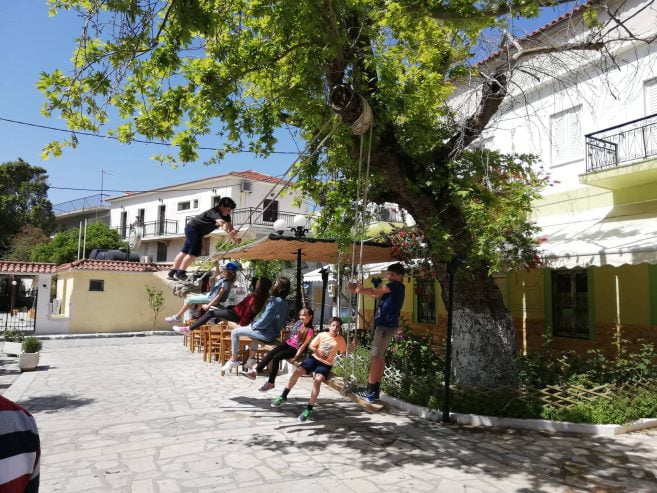 Αγόρια και κορίτσια το διασκέδασαν με την ψυχή τους, καθώς ανέβηκαν στη τεράστια κούνια που είχε επιμεληθεί ο κ. Γιάννης Πασχάλης.