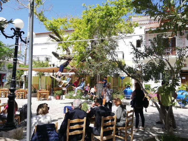 Ο Πολιτιστικός Σύλλογος Πυθαγορείου “Ο Λυκούργος” αναβίωσε την Δευτέρα του Πάσχα το έθιμο της σανιδόκλας (κούνια) στην Πλατεία Ειρήνης στο Πυθαγόρειο της Σάμου.