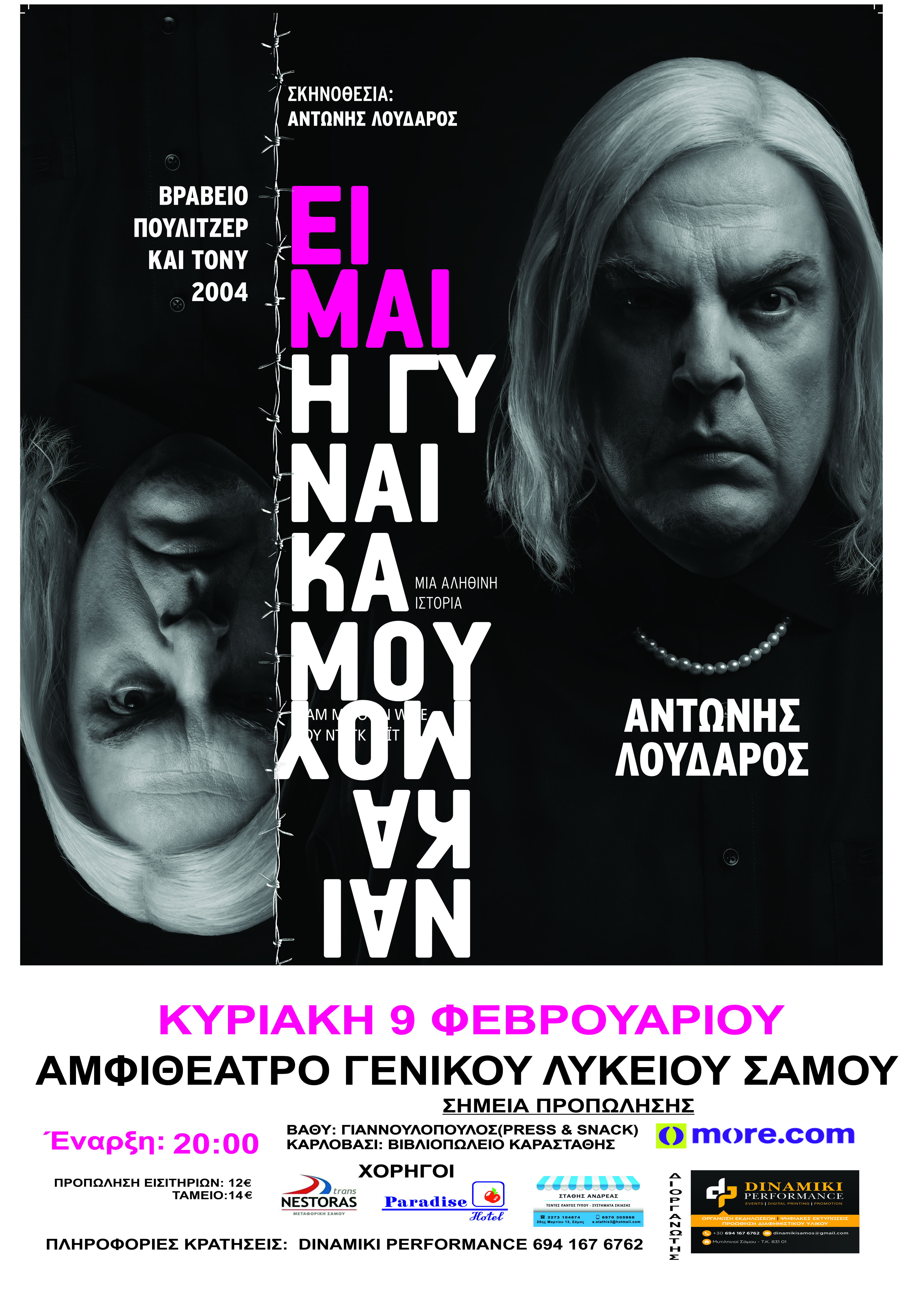 Την Κυριακή, 9 Φεβρουαρίου 2025, στις 8 το βράδυ, το αμφιθέατρο του Γενικού Λυκείου Σάμου υποδέχεται μια εξαιρετική θεατρική παράσταση που υπόσχεται να αγγίξει καρδιές και να προβληματίσει. Ο Αντώνης Λουδάρος, στην ιδιότητα του τόσο ως ηθοποιού όσο και σκηνοθέτη, θα παρουσιάσει το πολυβραβευμένο με PULITZER και TONY θεατρικό έργο του Doug Wright, «Είμαι η Γυναίκα Μου».