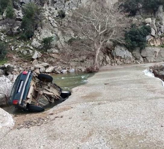 Σήμερα το πρωί είχαμε ένα ατύχημα, ευτυχώς χωρίς κανένα θύμα, στο γνωστό σημείο, το….«γεφυράκι του Να». Συμπατριώτης μας που ήλθε με το καράβι τα μεσάνυχτα στον Εύδηλο και ο προορισμός του ήταν το Καρκινάγρι, μη γνωρίζοντας προφανώς τον κίνδυνο, για τον οποίο ειδοποιούσαμε όλες τις προηγούμενες μέρες για το συγκεκριμένο σημείο, που με τις συνεχόμενες βροχοπτώσεις των τελευταίων ημερών, το οδόστρωμα πλημμυρίζει από ορμητικά νερά, επιχείρησε να περάσει, αλλά από κακό υπολογισμό πήγε λίγο πιο πάνω από εκεί που όπως υπολόγιζε είχε οδόστρωμα, για να αποφύγει την δεξιά πλευρά, πηγαίνοντας για Καρκινάγρι και  να μην πέσει στο ποτάμι. Εδώ όμως λόγω της ποσότητας του νερού και της ώρας (νύχτα) δεν φαινόταν ότι στο συγκεκριμένο σημείο ήταν μόνο νερά και όχι στέρεο έδαφος, ευτυχώς αβαθή, με αποτέλεσμα να γείρει το αυτοκίνητο με την αριστερή πλευρά μέσα στο ποτάμι.