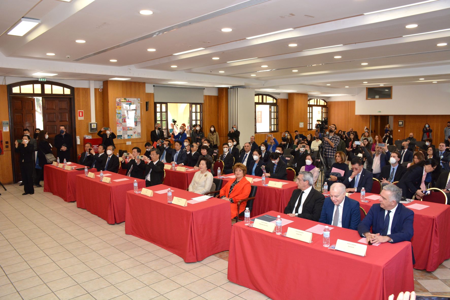 Ακολούθησαν χαιρετισμοί – ομιλίες της Πρυτάνισσας του Πανεπιστημίου Αιγαίου, Καθηγήτριας Χρυσή Βιτσιλάκη, του Περιφερειάρχη Νοτίου Αιγαίου, κ. Γιώργου Χατζημάρκου, του Δήμαρχου Ρόδου, κ. Αντώνη Καμπουράκη και της Α.Ε. της Αντιπροέδρου της Λαϊκής Δημοκρατίας της Κίνας, Sun Chunlan.