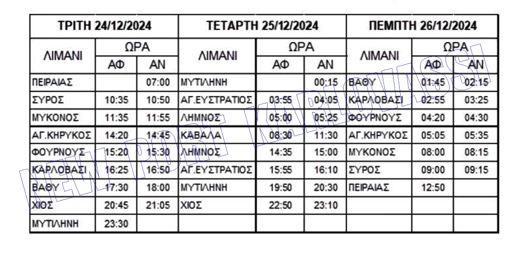 Ως αποτέλεσμα, τα δρομολόγια που είχαν προγραμματιστεί από την Τρίτη 24/12/2024 έως την Πέμπτη 06/12/2024 (άφιξη στον Πειραιά) θα τροποποιηθούν σύμφωνα με τον κάτωθι πίνακα και στη συνέχεια θα εκτελεστούν όπως έχουν εγκριθεί