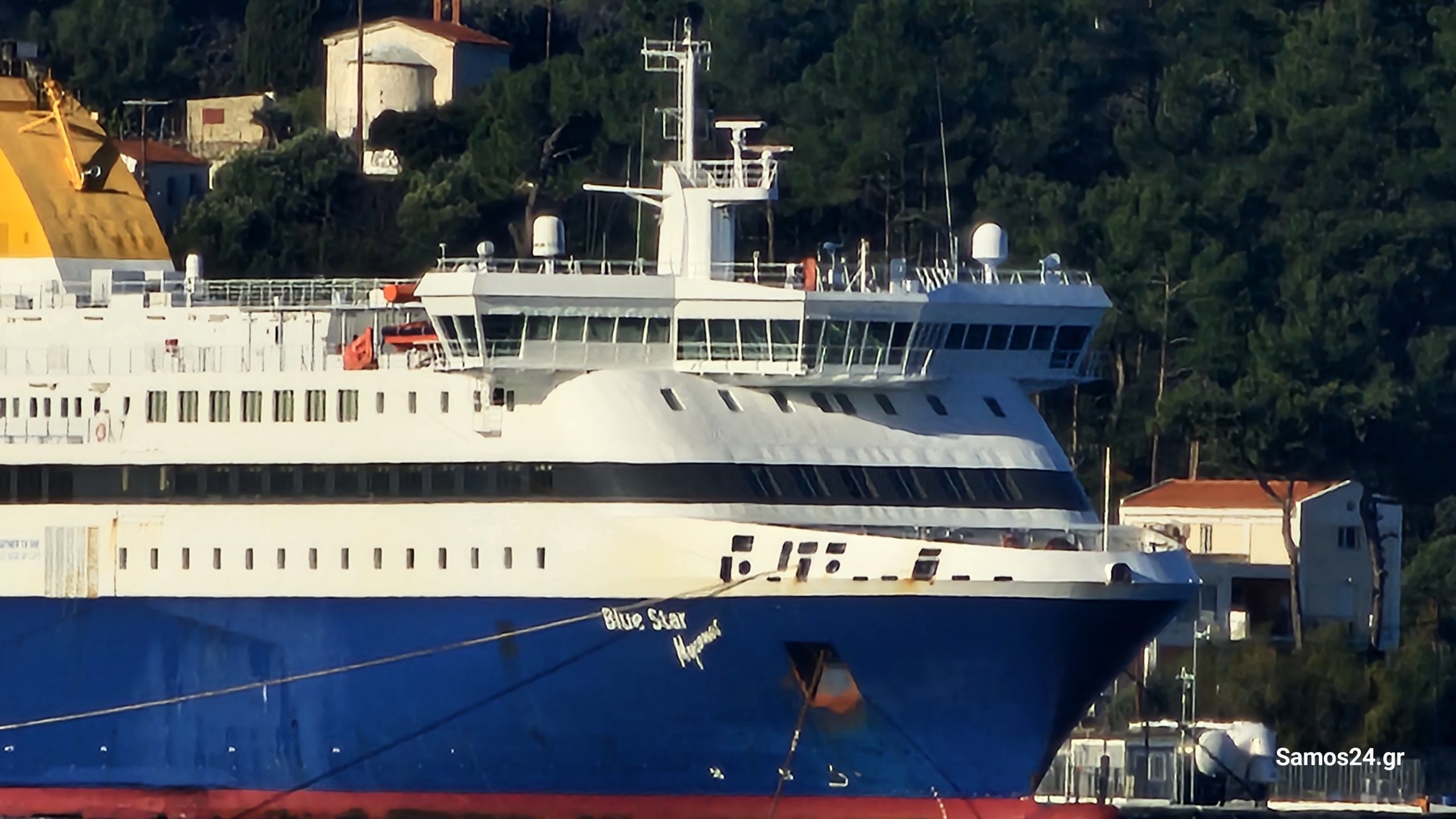 Το πλοίο παραμένει στο λιμάνι της Μυτιλήνης λόγω κακοκαιρίας.