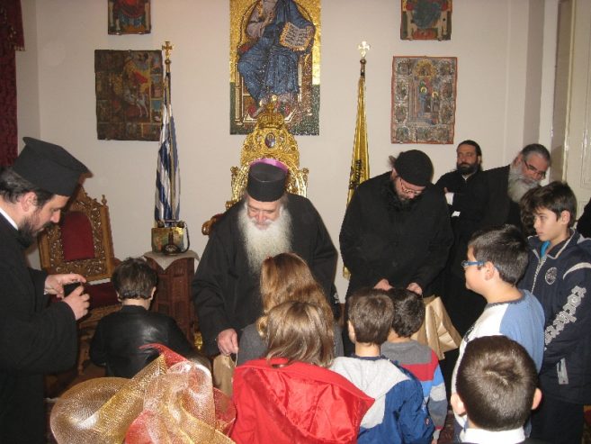 Ακολούθως μοίρασε δώρα ανάλογα με την ηλικία τους σε όλα τα παιδιά, στις πρεσβυτέρες και τους Ιερείς .