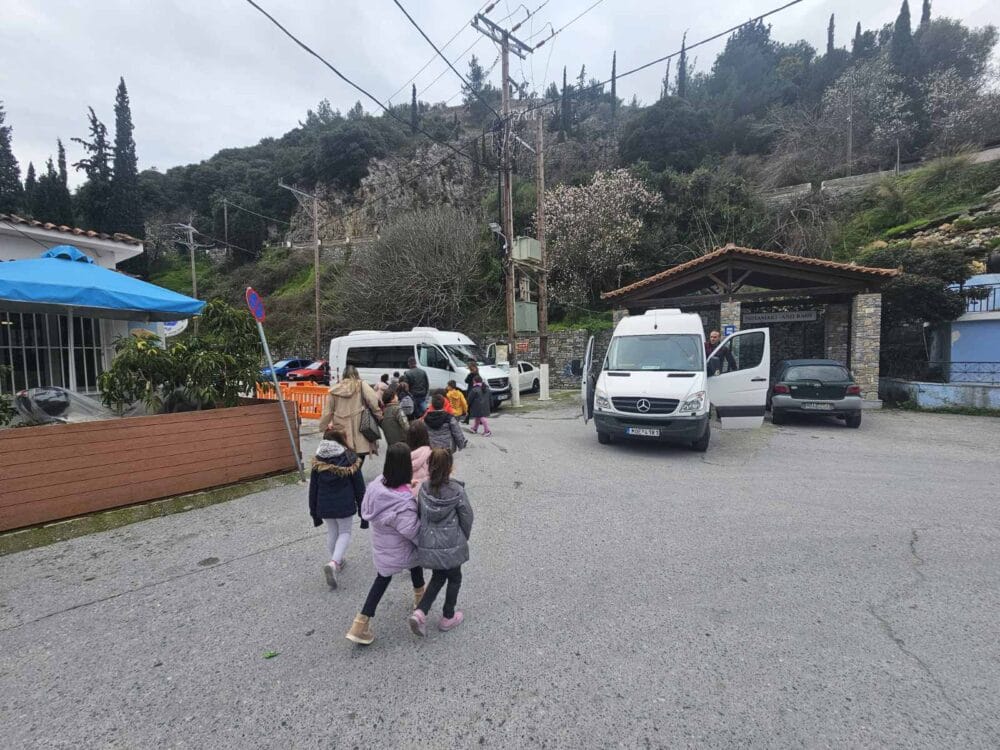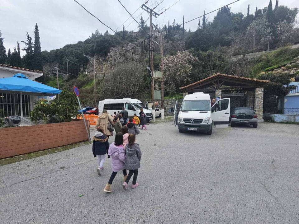 Η μεταφορά των μαθητών από και προς τον ναό εξασφαλίστηκε πλήρως από την ευγενική χορηγία του ομίλου Χριστινίδη.