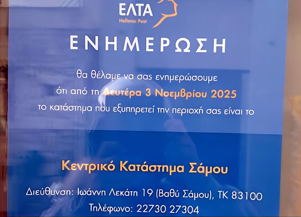 Από τη Δευτέρα 3 Νοεμβρίου 2025 σταματά τη λειτουργία του το ταχυδρομικό υποκατάστημα των ΕΛΤΑ στο Πυθαγόρειο. Όπως αναφέρει η ανακοίνωση που έχει αναρτηθεί στην είσοδό του, όλες οι συναλλαγές θα εξυπηρετούνται πλέον αποκλειστικά από το Κεντρικό Κατάστημα Σάμου, στην οδό Ιωάννη Λεκάτη 19, στο Βαθύ.