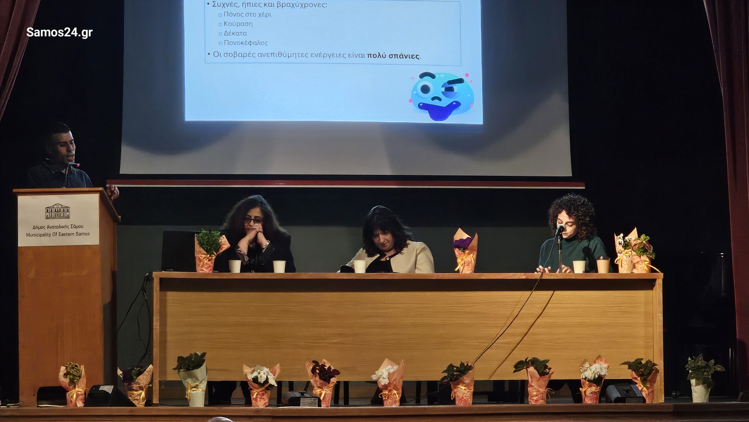 Εννέα γιατροί από διαφορετικές ειδικότητες ανέβηκαν στο βήμα του Δημαρχιακού Μεγάρου του Δήμου Ανατολικής Σάμου σήμερα, Σάββατο 25 Απριλίου, για να μιλήσουν για κάτι που αφορά όλους, τον εμβολιασμό. Από το νεογέννητο ώς την έγκυο, από τον διαβητικό ώς τον καρκινοπαθή, κάθε ομιλητής ανέλυσε τα νεότερα δεδομένα για την ηλικία ή την ομάδα ασθενών που γνωρίζει καλύτερα.