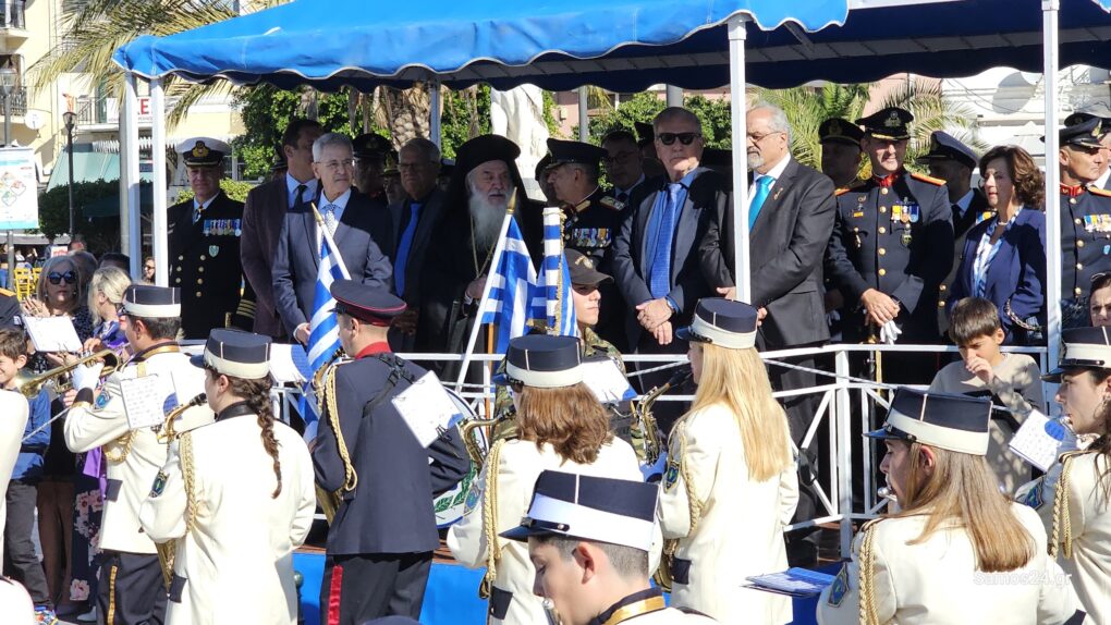 Οι φιλαρμονικές της Σάμου και του Καρλοβάσου συνόδευσαν αυτό το μέρος της παρέλασης και κράτησαν τον βηματισμό για μαθητές και συλλόγους.