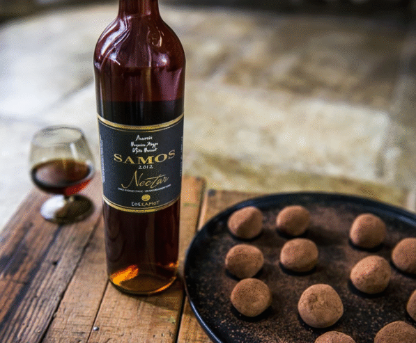 Η δροσιστική του οξύτητα θα ξεκουράσει τον ουρανίσκο μας από τον καταιγισμό γεύσεων. Και καθώς θα σερβίρουμε το χοιρινό με κυδώνι ή την πάπια με πορτοκάλι, θα πρωτοτυπή σουμε συνδυάζοντάς τα με το Samos Nectar, τον γλυκό οίνο από υπερώριμα σταφύλια, που μπλέκει αρώματα ξηρών καρπών, καραμέλας κι αποξηραμένων φρούτων. Ιδανικό για pairing και με τα γλυκά που θα κλείσουν όμορφα το γιορτινό μενού.