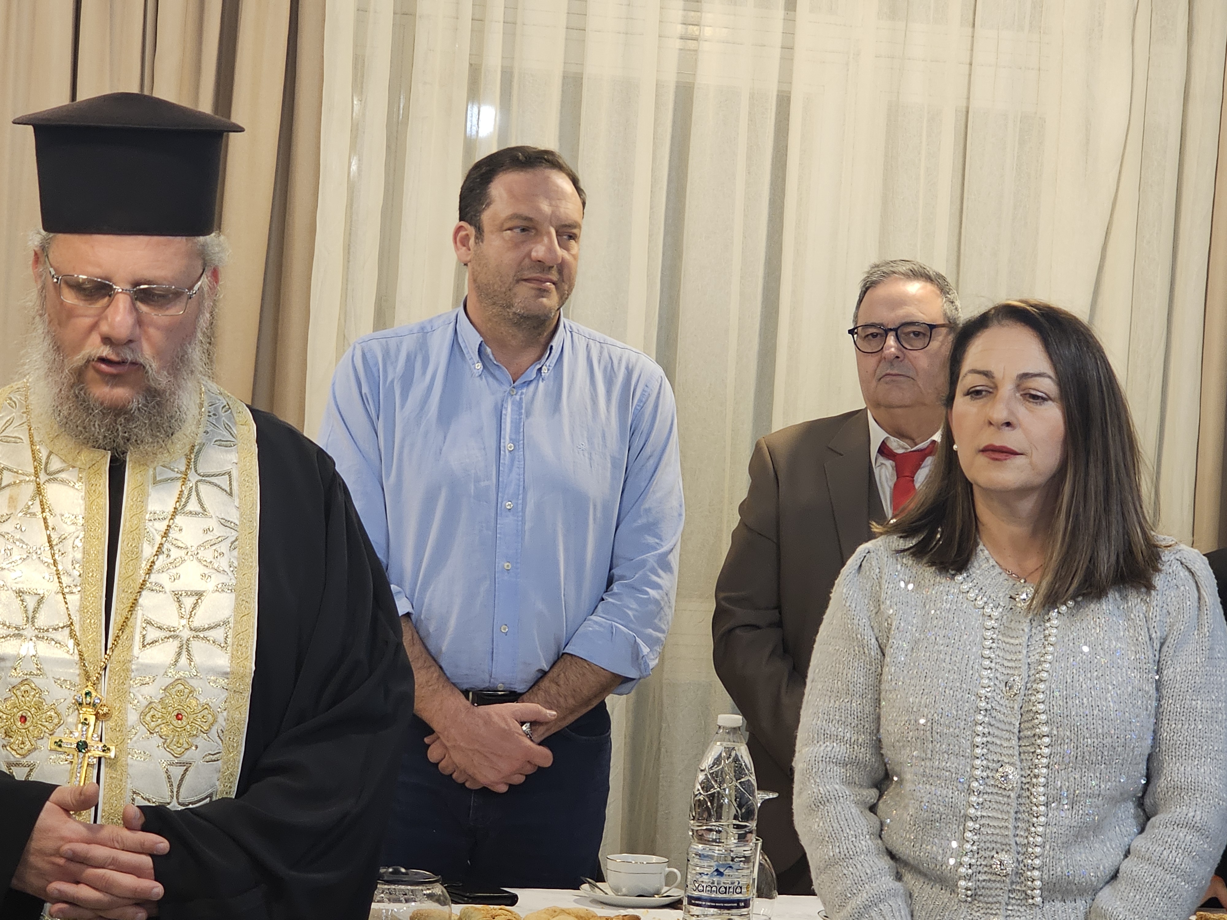 Την πίτα ευλόγησαν οι πατέρες Στέφανος Αθανασίου και Εμμανουήλ π. Εμμανουήλ Γιαγουρτάς, των Ι. Ναών Αγ. Νικολάου και Αγ. Χαραλάμπους αντίστοιχα, παρουσία του Δημάρχου Ανατολικής Σάμου, κ. Πάρη Παπαγεωργίου. Στην ολιγόλεπτη ομιλία της, η πρόεδρος του Διοικητικού Συμβουλίου, κ. Θεοδώρα Παπαδάμ, καλωσόρισε τους παρευρισκόμενους και ευχήθηκε σε όλους μια χρονιά γεμάτη υγεία.