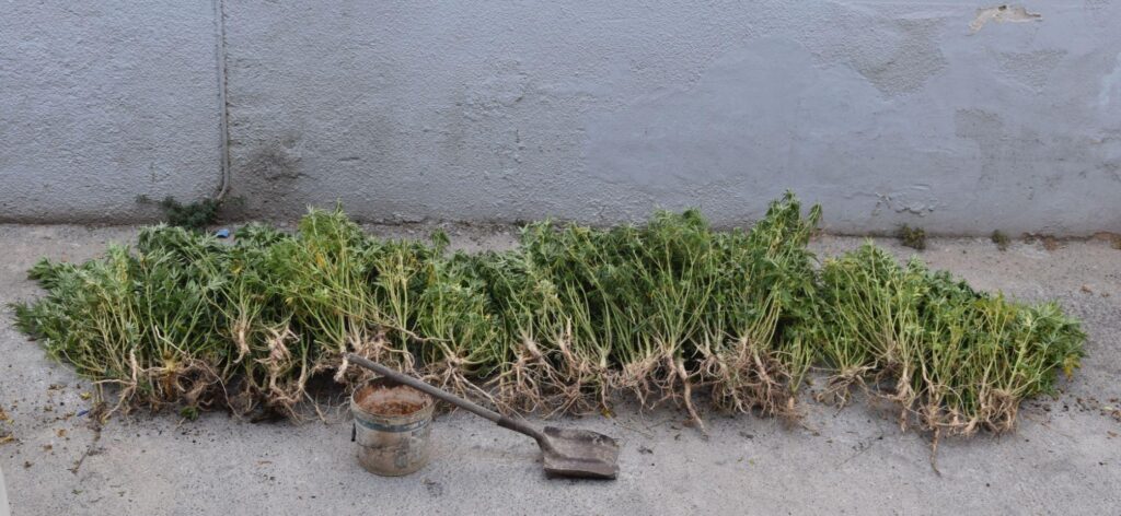 Τα δενδρύλλια, ένα φτυάρι, ένας κουβάς, καθώς και φύλλα κάνναβης βάρους -4,4- γραμμαρίων που είχε στην κατοχή του ο δράστης, κατασχέθηκαν.