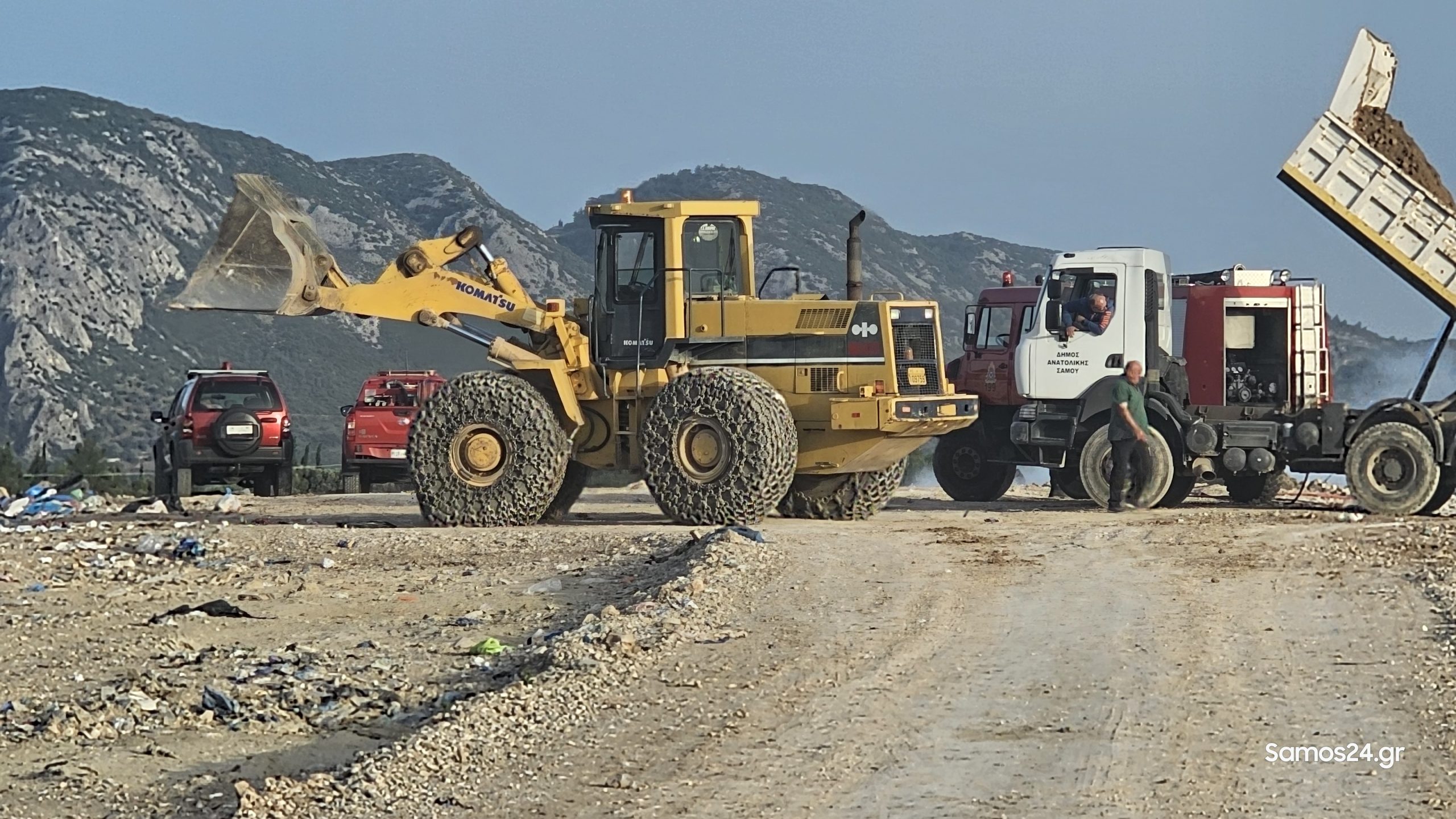 Ο κ. Κουβακάς εξήγησε την ιδιαιτερότητα της αντιμετώπισης πυρκαγιών σε χώρους απόθεσης απορριμμάτων, επισημαίνοντας ότι η κατάσβεση δεν μπορεί να επιτευχθεί μόνο με τη χρήση νερού. «Ειδοποιήθηκαν οι αρχές για να συνδράμουν με χωματουργικά, γιατί όπως γνωρίζετε τα απορρίμματα δεν σβήνουν με νερό», δήλωσε. Για τον σκοπό αυτό, στο σημείο επιχειρούν χωματουργικά μηχανήματα από τον Δήμο Ανατολικής Σάμου, τον Στρατό την Αντιπεριφέρεια και άλλους συνεργαζόμενους φορείς. «Αυτή τη στιγμή προσπαθούμε να κάνουμε επικάλυψη των απορριμμάτων, γιατί άλλος τρόπος δεν υπάρχει για να σβήσει η φωτιά. Ρίχνουμε νερό για να μειώσουμε το θερμικό φορτίο, αλλά για να σβήσει πρέπει να γίνει επικάλυψη με χώμα», διευκρίνισε ο Περιφερειακός Διοικητής.