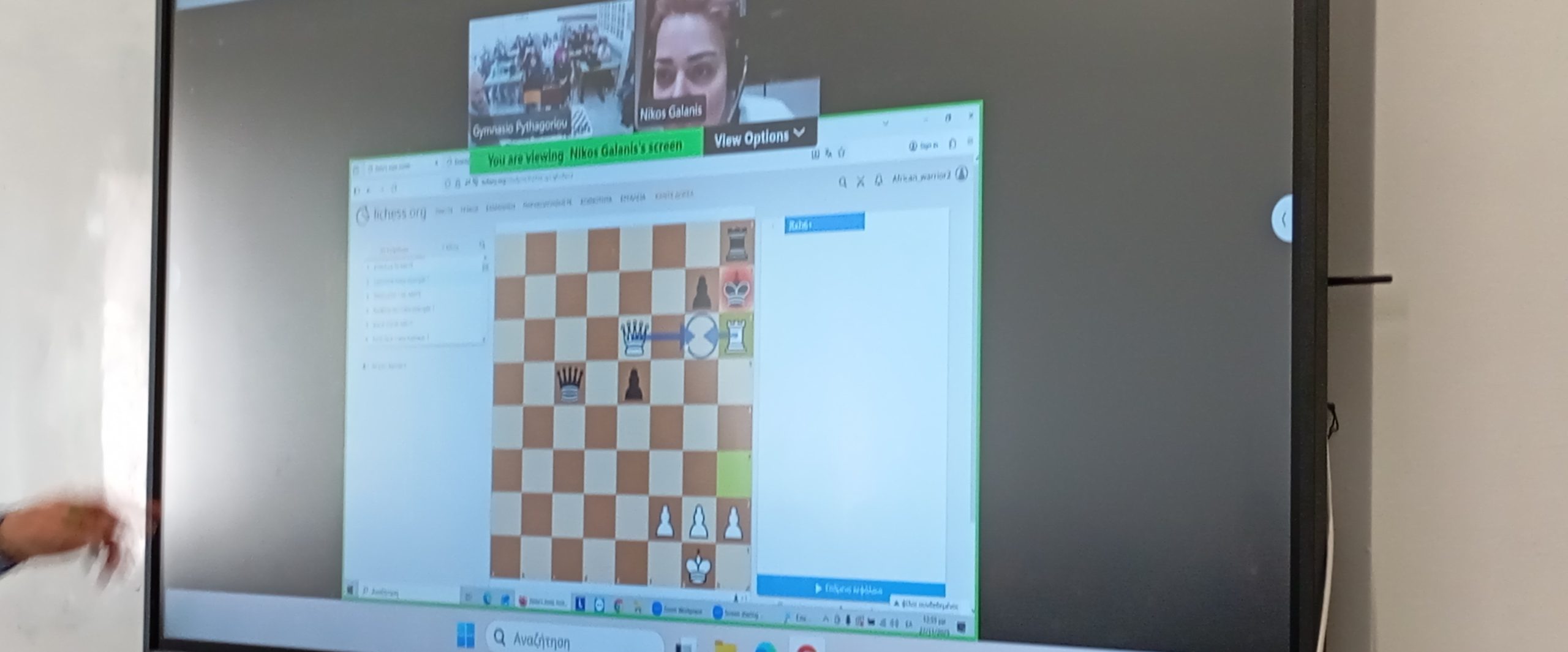 Οι μαθητές του Γυμνασίου Πυθαγορείου είχαν μια ιδιαίτερη εμπειρία, καθώς συνδέθηκαν ζωντανά με δύο σημαντικές παρουσίες του ελληνικού σκακιού. Η πρωταθλήτρια Ελλάδος Γυναικών Ζέττα Γράψα και ο έμπειρος αθλητής και προπονητής Νίκος Γαλάνης μίλησαν στους μαθητές και μοιράστηκαν τη δική τους πορεία στο άθλημα, λίγες ημέρες πριν τη συμμετοχή τους στο 47ο Πανελλήνιο Πρωτάθλημα στο Αίγιο.