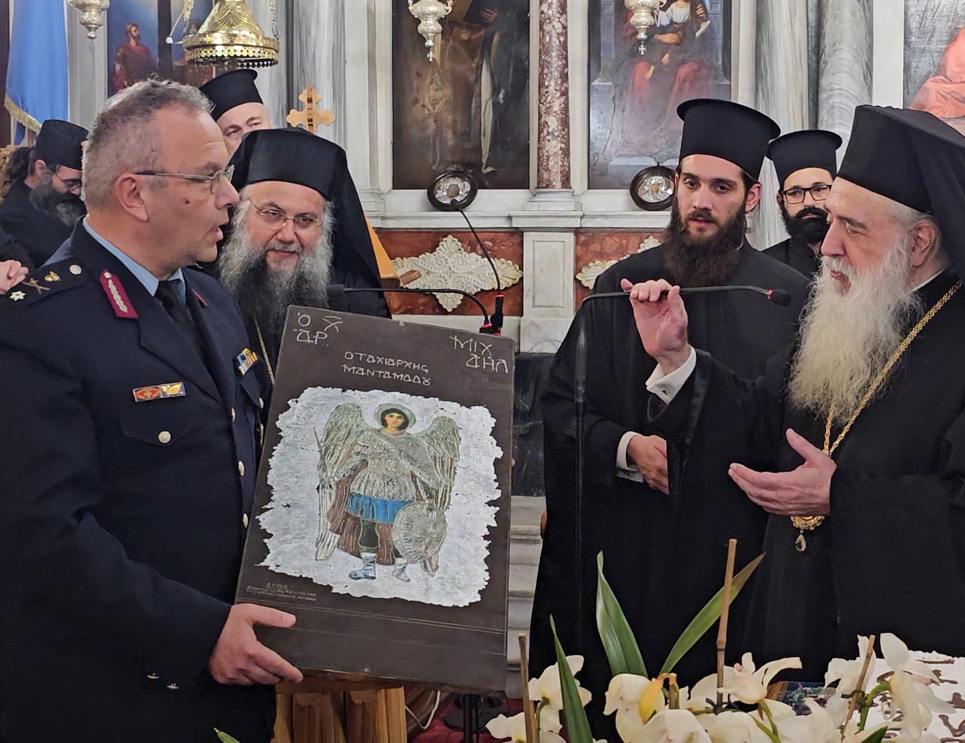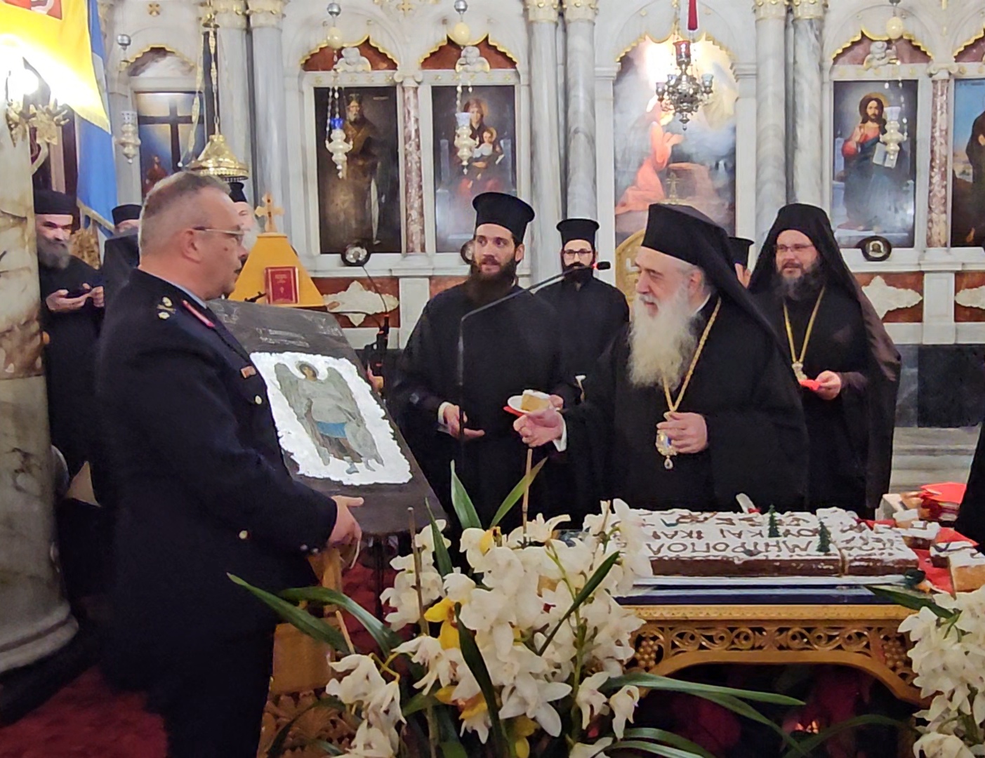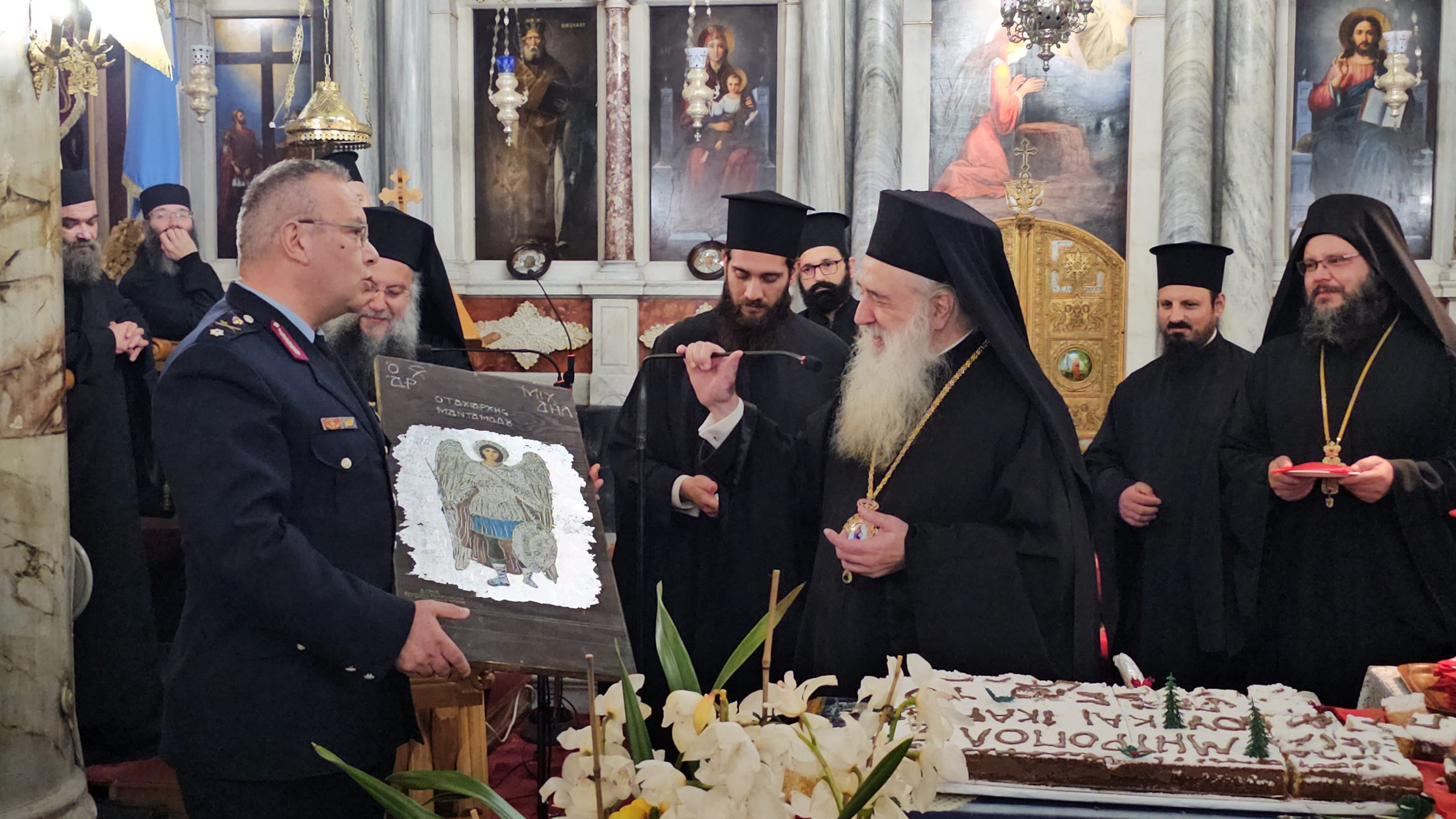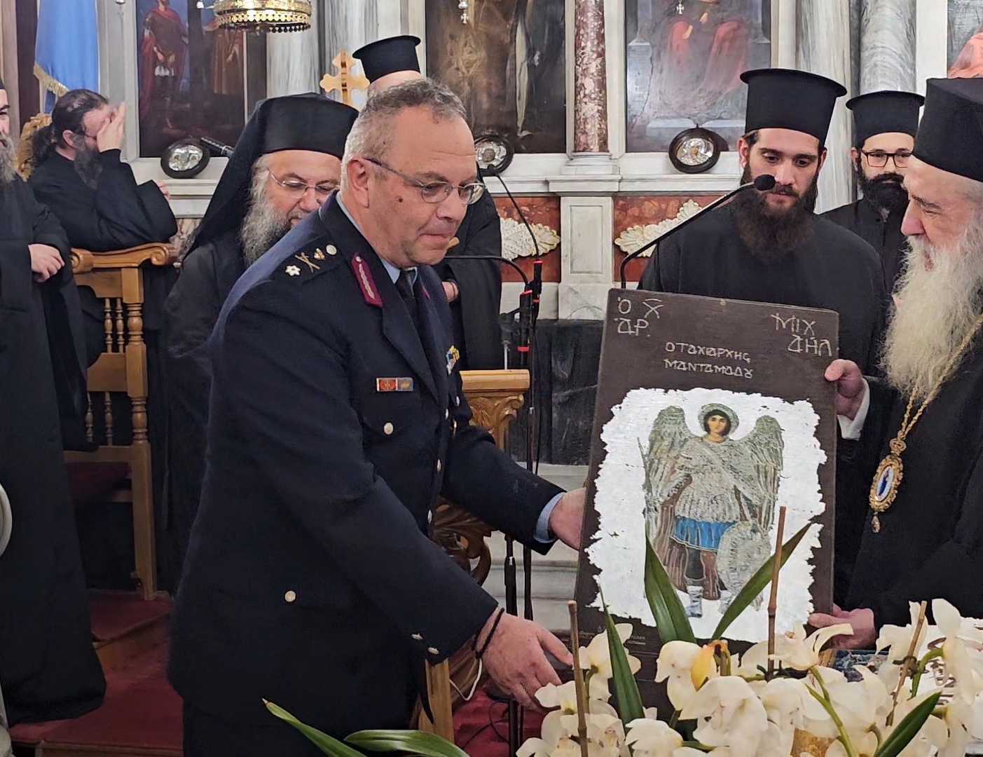 Συγκινητική στιγμή της τελετής αποτέλεσε η δωρεά μιας εικόνας του Ταξιάρχη Μιχαήλ Μανταμάδο Λέσβου από τον Ταξίαρχο της ΕΛ.ΑΣ. και Διευθυντή Αστυνομίας Σάμου, κ. Δημήτρη Μαιστρέλλη, στον Σεβασμιώτατο Μητροπολίτη κ.κ. Ευσέβιο, ως ένδειξη σεβασμού και αναγνώρισης του έργου της Μητροπόλεως.