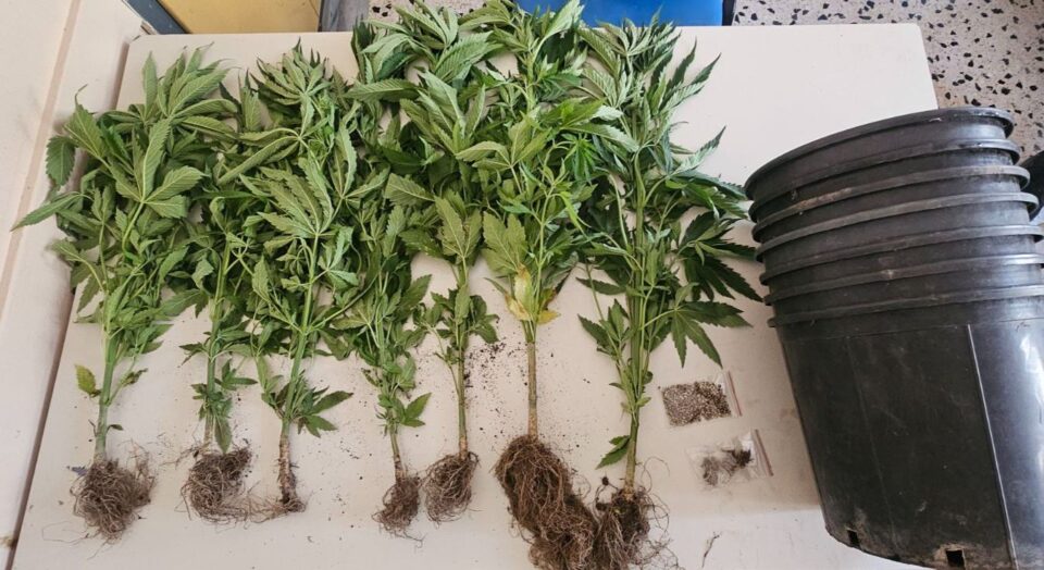 - Επτά (7) δενδρύλλια κάνναβης, ύψους από 71 έως 89 εκατοστά, καλλιεργούμενα σε γλάστρες.