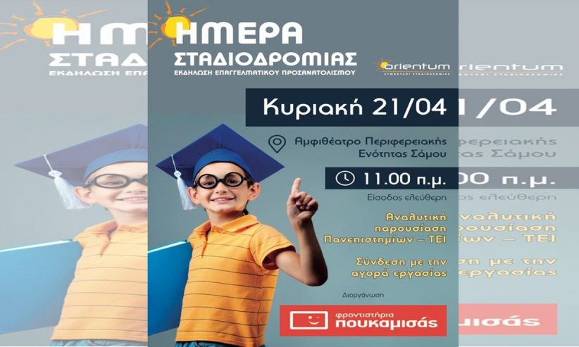 Και φέτος, τα φροντιστήρια “Πουκαμισάς Σάμος” , διοργανώνουν ημερίδα επαγγελματικού προσανατολισμού για τους μαθητές Λυκείου, τους γονείς και κηδεμόνες τους.  Η εκδήλωση θα πραγματοποιηθεί την Κυριακή, 21 Μαρτίου , στις 11 π.μ. στο Αμφιθέατρο της Περιφερειακής Ενότητας Σάμου .