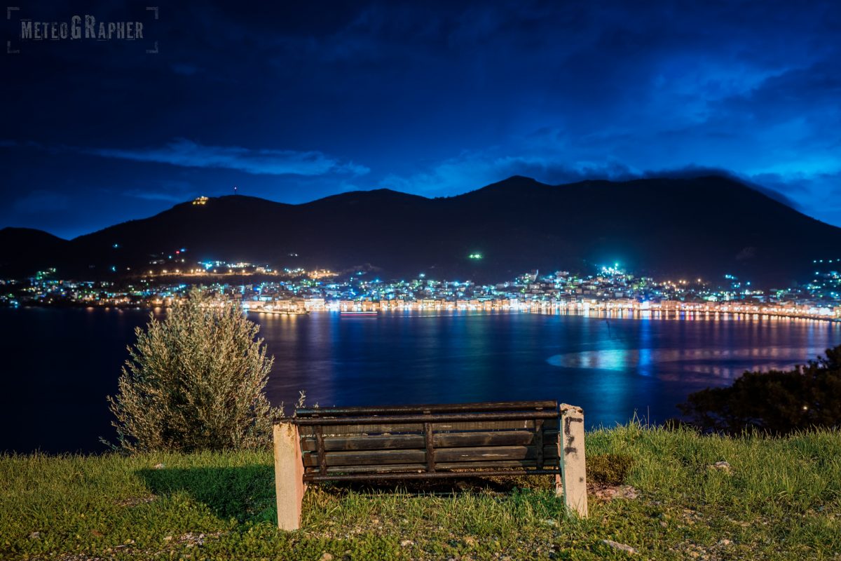 Στη συνέχεια αποφάσισα να επιστρέψω στο Βαθύ, αλλά μία ακόμα καταιγίδα που δημιουργήθηκε εντωμεταξύ στα ανατολικά, μου έδωσε την ευκαιρία να δοκιμάσω αυτό το κάδρο από το παγκάκι στον περιφερειακό με θέα προς την πόλη μας.