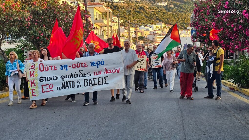 Κινητοποίηση πραγματοποίησε το απόγευμα της Κυριακής το Κομμουνιστικό Κόμμα Ελλάδας (ΚΚΕ) Σάμου, με τη συμμετοχή μελών και φίλων του κόμματος, διαδηλώνοντας ενάντια στην εμπλοκή της Ελλάδας σε στρατιωτικές επιχειρήσεις και ζητώντας τον τερματισμό διευκολύνσεων προς το Ισραήλ, τις ΗΠΑ και το ΝΑΤΟ.