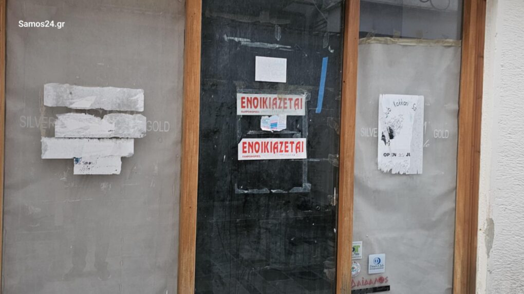 Περπατάς στο κέντρο της Σάμου και μετράς, ένα κλειστό μαγαζί, δύο, τρία… Σχεδόν τριάντα στους δύο εμπορικούς δρόμους μόνο. Οι άδειες βιτρίνες έχουν γίνει πια μέρος του τοπίου.