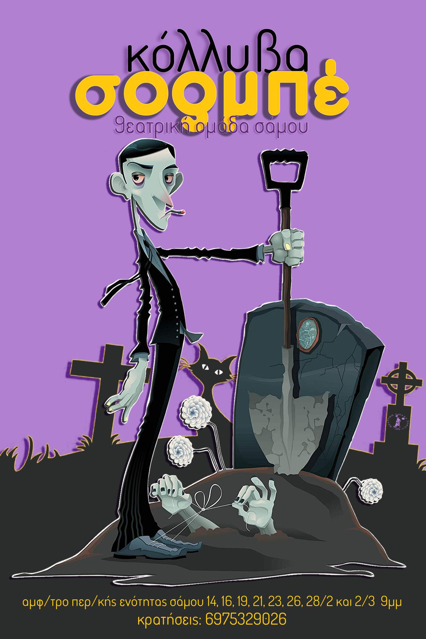 Μια ασυνήθιστη κωμωδία που φέρνει το χιούμορ ακόμα και στις πιο σοβαρές πτυχές της ζωής ανεβάζει στη σκηνή η Θεατρική Ομάδα Σάμου. Η παράσταση “Κόλλυβα Σορμπέ”, σε σκηνοθεσία της Βίκυς Παπαδοπούλου, καταπιάνεται με το θέμα του θανάτου, παρουσιάζοντάς τον μέσα από έναν εντελώς διαφορετικό, διασκεδαστικό φακό.