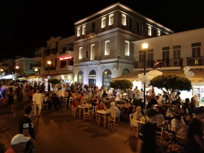 Οι κεντρικοί οδοί της πόλης της Σάμου έκλεισαν για τα οχήματα και ο κόσμος, όσο έπεφτε η νύχτα, πολλαπλασιάζονταν με αποτέλεσμα κάποια στιγμή να δημιουργηθεί το αδιαχώρητο.