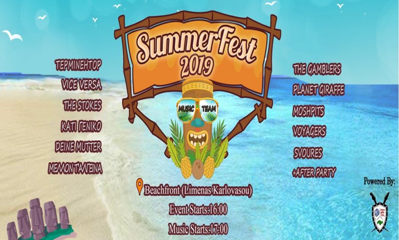 Η Μουσική Ομάδα ΣΘΕ του Πανεπιστημίου Αιγαίου, διοργανώνει για 4η συνεχόμενη χρονιά το πλέον αγαπημένο και πολλά υποσχόμενο MusicTeam SummerFest 2019™ το Σάββατο 22 Ιουνίου στο Beachfront στο Καρλόβασι.