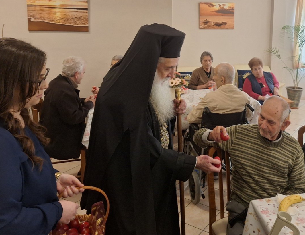 Κατά την ίδια ημέρα, ο Σεβασμιώτατος επεσκέφθη το Γηροκομείο της Ιεράς Μητροπόλεώς μας στο Καρλόβασι «Ευγηρίας Πρόνοια», όπου συνήντησε και συνομίλησε με τα ευλογημένα μας Γηρατειά και με το προσωπικό, προσφέροντας σε όλους πασχαλινές ευλογίες.