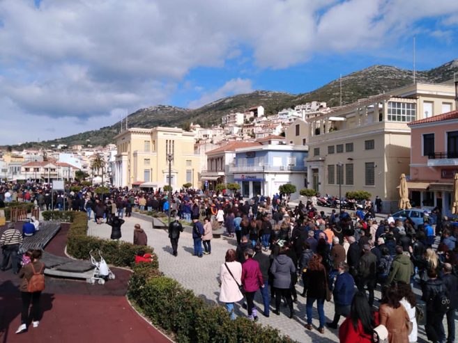 Με σύνθημα «Stop στο έγκλημα – να κλείσει το Hotspot – Stop στην υποβάθμιση της υγείας», το Επιμελητήριο Σάμου, το Εργατικό Κέντρο Νομού Σάμου,το Νομαρχιακό Τμήμα Σάμου της ΑΔΕΔΥ,ο Εμπορικός Σύλλογος Σάμου ,ο Εμπορικός Σύλλογος Καρλοβάσου, ο Δικηγορικός Σύλλογος Σάμου,ο Σύλλογος Εστίασης και Ψυχαγωγίας Σάμου,η Ένωση Ξενοδόχων Σάμου,ο Σύλλογος Ενοικιαζομένων Δωματίων και Διαμερισμάτων Ν.Σάμου,ο Εμπορικός Σύλλογος Μυτιληνιών Σύνδεσμος Τουριστικών και Ναυτιλιακών Πρακτόρων Σάμου, o Οδοντιατρικός Σύλλογος Σάμου,ο Ιατρικός Σύλλογος Σάμου,ο Φαρμακευτικός Σύλλογος Σάμου ,ο Σύλλογος Πολυτέκνων Σάμου – Ικαρίας και Φούρνων ,τα ΚΤΕΛ Σάμου,τα Ραδιοταξί Σάμου, το Σωματείο Ιδιωτικών υπάλληλων ,το Σωματείο Ξενοδοχοϋπαλλήλων και το Σωματείο Οικοδόμων του νησιού, με την συμμετοχή πλήθους κόσμου (υπολογίζεται 2.500-3.000 άτομα), συγκεντρώθηκαν στη πλατεία Θεμιστοκλή Σοφούλη στο Βαθύ, διεκδικώντας να κλείσει άμεσα το hotspot.