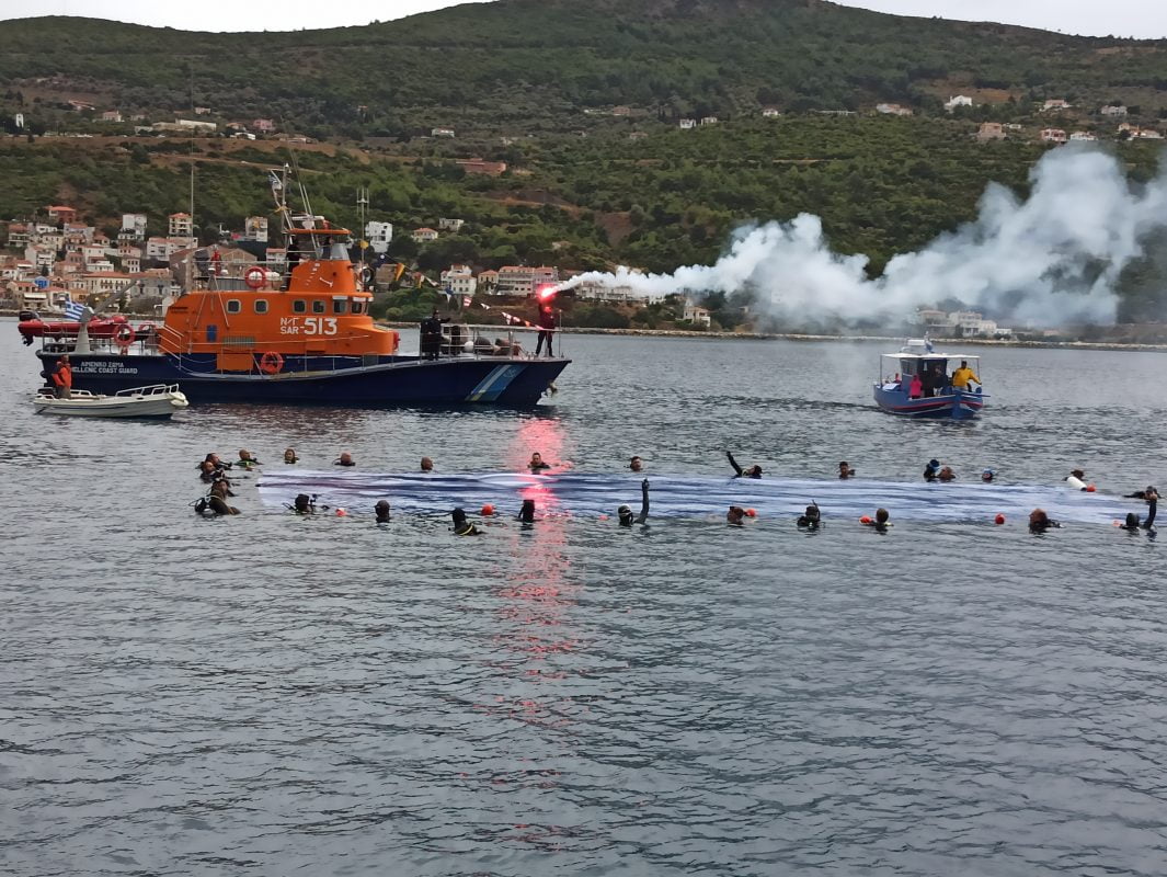 Στο πλαίσιο του φετινού εορτασμού της Εθνικής μας Επετείου , στο οποίο λόγω υγειονομικών συνθηκών δεν περιλαμβάνονται στρατιωτικές και μαθητικές παρελάσεις, πραγματοποιήθηκε νωρίς το μεσημέρι της 28ης Οκτωβρίου, ανάπτυξη Ελληνικής σημαίας μεγάλου μεγέθους (104 τ.μ.) στην επιφάνεια της θάλασσας στον κόλπο της πόλεως Σάμου από δύτες αυτόνομης κατάδυσης του Λιμεναρχείου Σάμου και του Συλλόγου Αυτοδυτών Σάμου, υπό την αιγίδα και την οργανωτική υποστήριξη του Δήμου Ανατολικής Σάμου