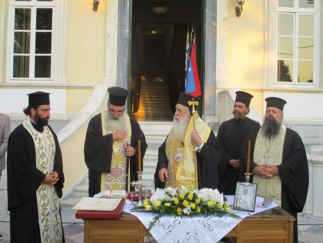 Την τελετή της ορκωμοσίας πραγματοποίησε ο Σεβασμιότατος Μητροπολίτης Σάμου Ικαρίας και Κορσεών κ.κ Ευσέβιος, ο οποίος δώρισε στο νέο δήμαρχο μια εικόνα της Αγίας Ζώνης.