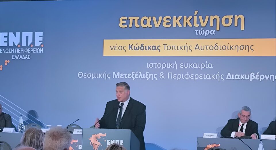 Στο συνέδριο της ΕΝΠΕ που έγινε στην Αθήνα, στο Grand Hyatt Hotel, τοποθετήθηκε ο Αντιπεριφερειάρχης Βορείου Αιγαίου Παντελής Μπουρνιάς, θέτοντας το ζήτημα της νησιωτικότητας και την απουσία της από τον νέο κώδικα επανεκκίνησης της Τοπικής Αυτοδιοίκησης. Στην ομιλία του παρουσίασε τα προβλήματα που αντιμετωπίζουν τα νησιά του Βορείου Αιγαίου και ζήτησε συγκεκριμένες παρεμβάσεις από την Πολιτεία.