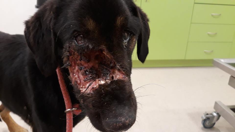 Η τεράστια πληγή δείχνει την σοβαρότατη μόλυνση που έχει υποστεί το ζώο, ενώ το μαρτύριο του δεν τελειώνει εδώ αφού έχασε και το ένα του μάτι.