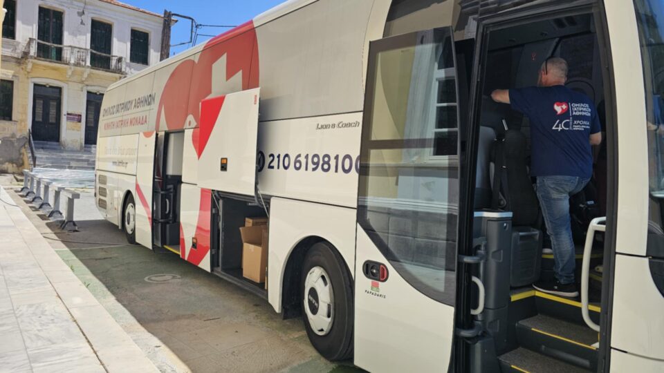 Η Κινητή Ιατρική Μονάδα του Ομίλου Ιατρικού Αθηνών, στελεχωμένη με εξειδικευμένο ιατρικό και νοσηλευτικό προσωπικό, βρίσκεται στο νησί από την Τετάρτη 28 Μαΐου, προσφέροντας πολύτιμες υπηρεσίες υγείας. Η δημοσιογράφος Σταματία Ράπτη βρέθηκε στο χώρο των εξετάσεων, κατέγραψε τον παλμό της πρωτοβουλίας και συνομίλησε με τους γιατρούς και τους υπεύθυνους της δράσης.