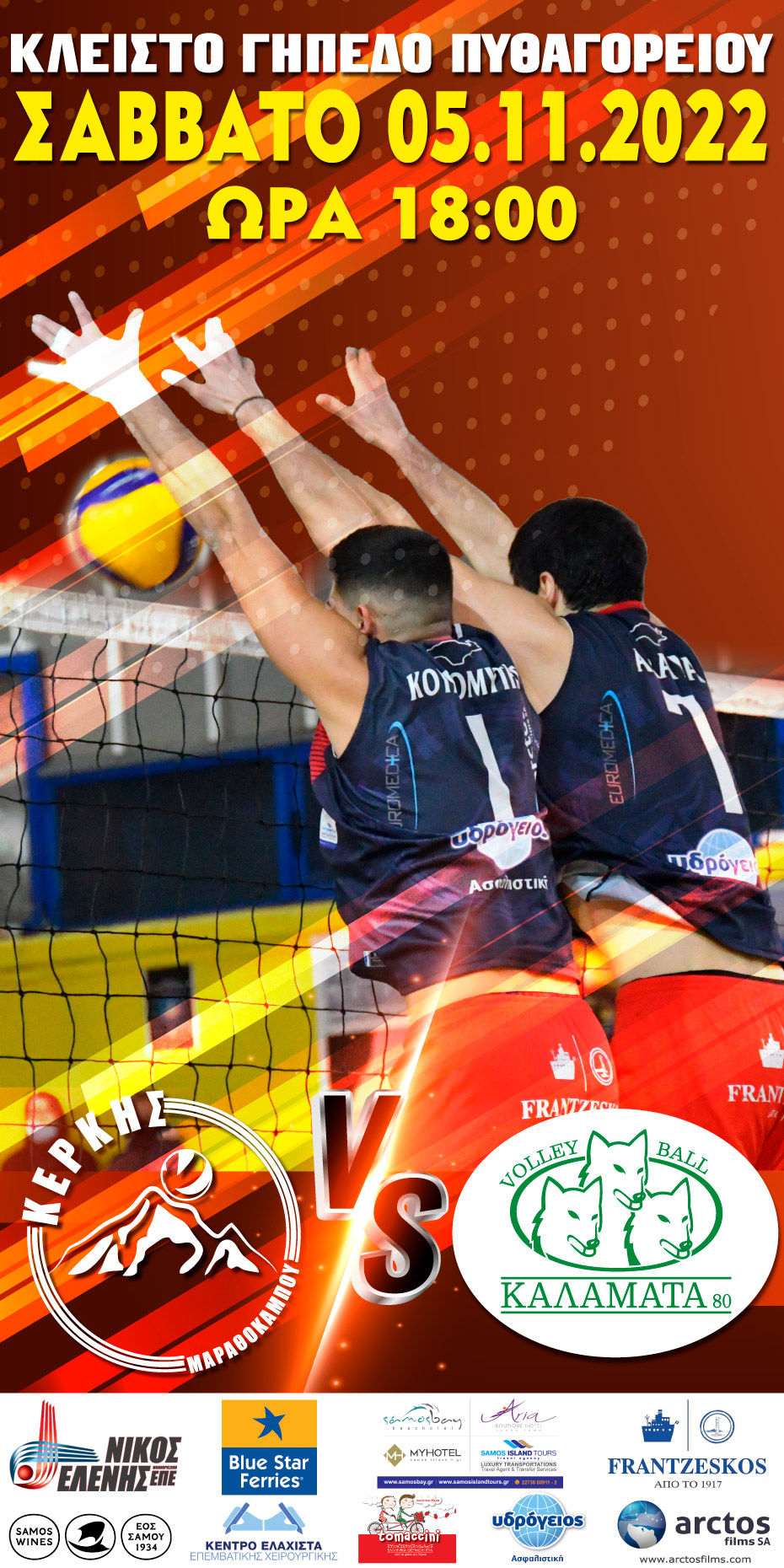 Αυτό το Σάββατο, 5 Νοεμβρίου, στα πλαίσια της 1ης Αγωνιστικής Pre League Βόλεϊ Ανδρών, ο Κέρκης Μαραθοκάμπου αντιμετωπίζει την ισχυρή ομάδα της Καλαμάτας στο Κλειστό Γυμναστήριο Πυθαγορείου, στις 18:00.