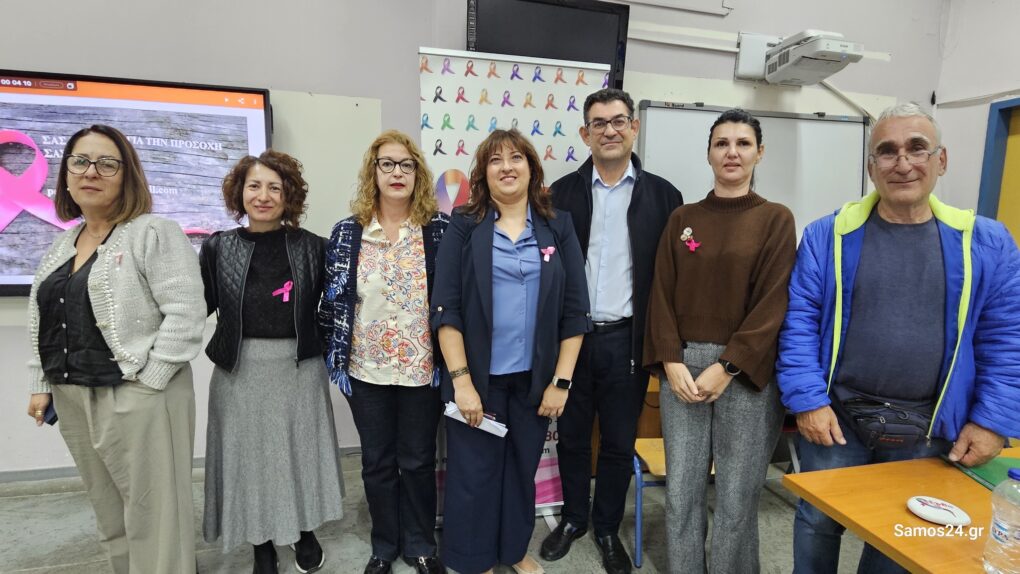 Με πολύ καλή συμμετοχή και ουσιαστικό ενδιαφέρον πραγματοποιήθηκε στο Εσπερινό ΕΠΑΛ Σάμου «Ελπινίκη Μιχαλούδη» η ενημερωτική εκδήλωση για την πρόληψη και τον καρκίνο του μαστού. Η παρουσία μαθητών και εκπαιδευτικών έδειξε ότι η ανάγκη για σωστή και προσβάσιμη ενημέρωση γύρω από τη γυναικεία υγεία παραμένει ισχυρή στη Σάμο, με τη συζήτηση να στρέφεται στον ρόλο της έγκαιρης διάγνωσης και των τακτικών εξετάσεων.